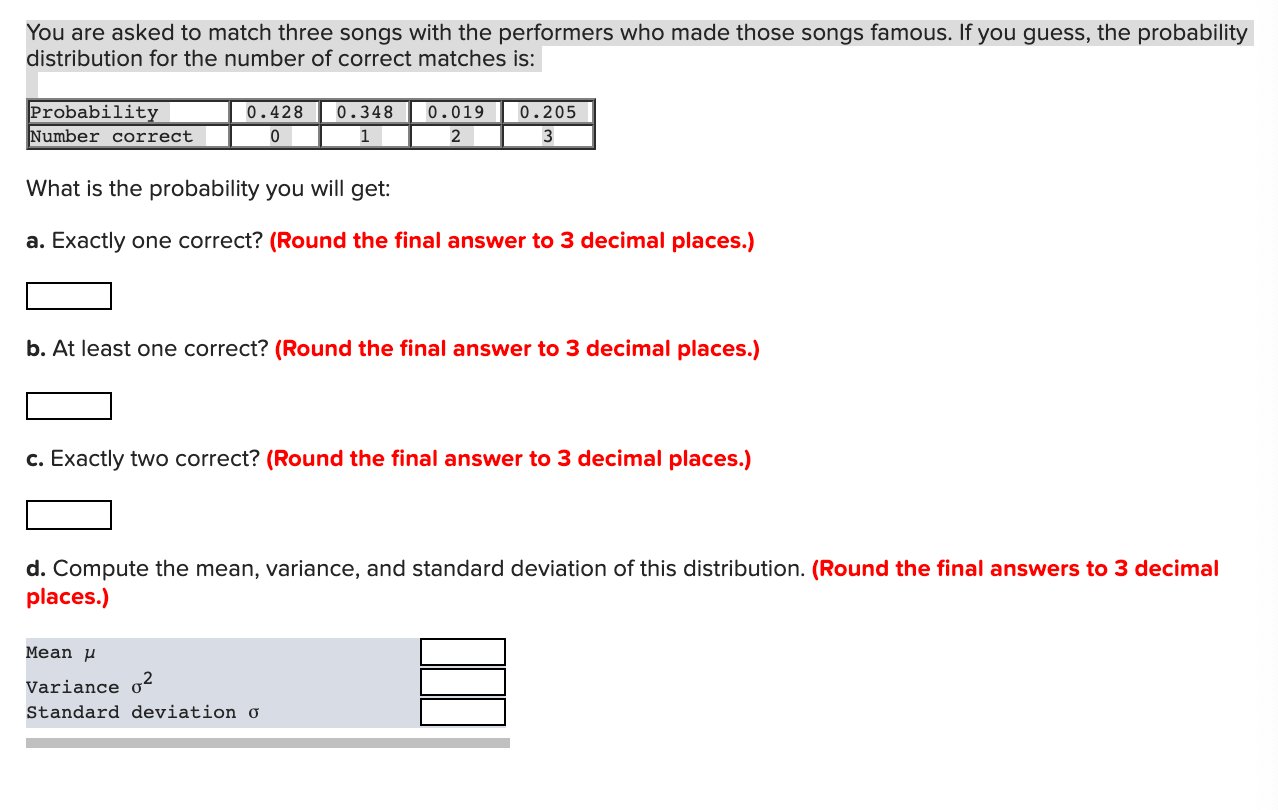 Solved You Are Asked To Match Three Songs With The Chegg Com